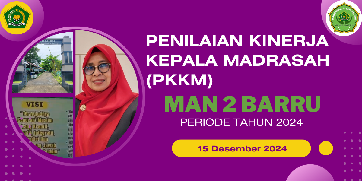 PENILAIAN KINERJA KEPALA MAN 2 BARRU TERLAKSANA DENGAN SUKSES DAN LANCAR PADA TANGGAL 15 DESEMBER 2024. INI MENUNJJUKKAN BAHWA PENINGKATAN KINERJA STAKE HOLDER MAN 2 BARRU DAPAT TERLAKSANA DENGAN BAIK DAN SUKSES. SEMUANYA BERKAT KERJASAMA UNSUR PIMPINAN MADRASAH, DEWAN GURU, TENAGA KEPENDIDIKAN , KOMITE MADRASAH, PENGAWAS BINA DAN JUGA SELURUH SISWA SISWI LEWAT EKSTRAKURIKULER. NILAI YANG DIDAPATKAN PUN TERMASUK KATEGORI NILAI TINGGI. KEPALA MAN 2 BARRU HJ. ROSNAWATI BUHARI MENGUCAPKAN SANGAT PUAS DENGAN CAPAIAN PKKM SATU TAHUNAN  2024 SERTA MENGUCAPKAN TERIMA KASIH ATAS KERJASAMA SEMUA PIHAK YANG TELAH MEMBANTU DALAM MENYUKSESKAN PKKM TAHUN2024 INI.